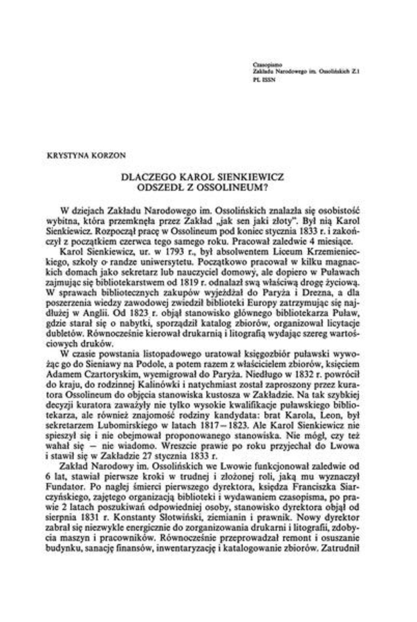 Czasopismo Zakładu Narodowego imienia Ossolińskich. Zeszyt 1