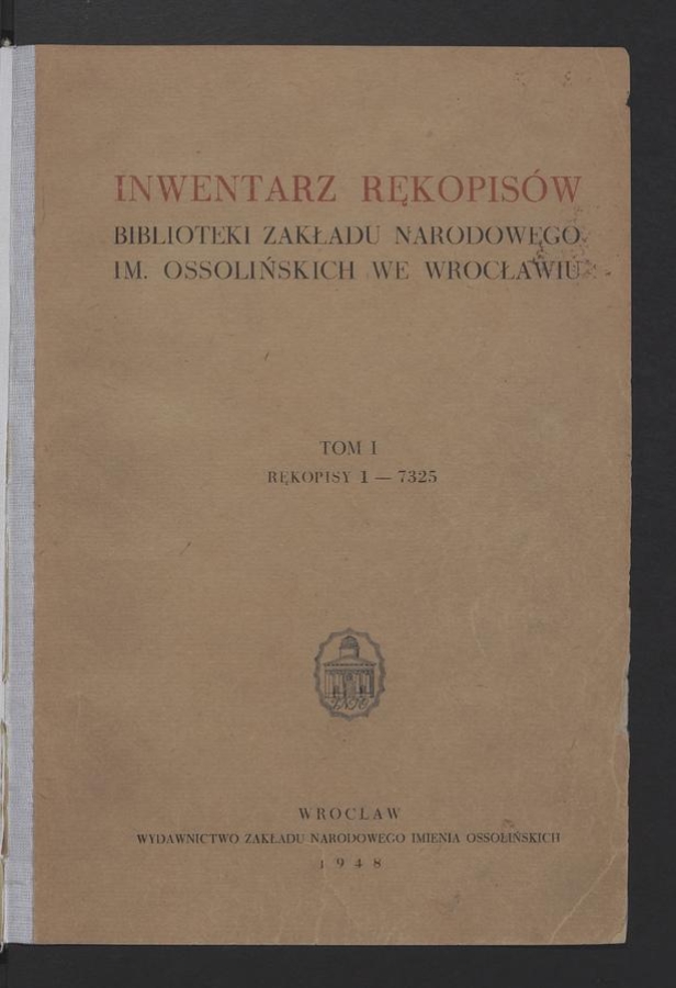 | Inwentarz rękopisów Biblioteki Zakładu Narodowego im. Ossolińskich we Wrocławiu. Tom 1, Rękopisy 1-7325 | Sep 11, 2025 |